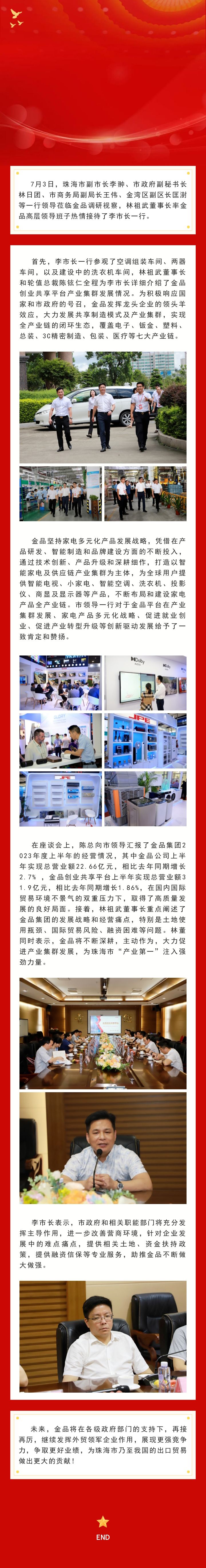 珠海市副市长李翀一行莅临金品调研视察